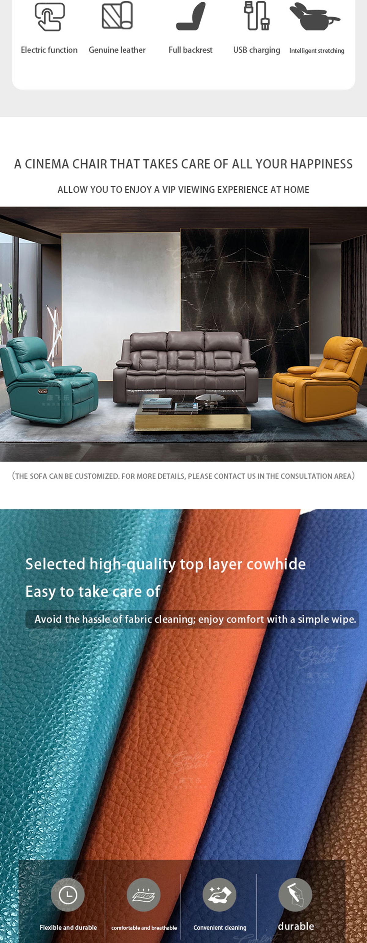 Experience ultimate comfort and sophistication with our Luxury Electric Recliner Chair, designed specifically for home theaters.Customizable colors