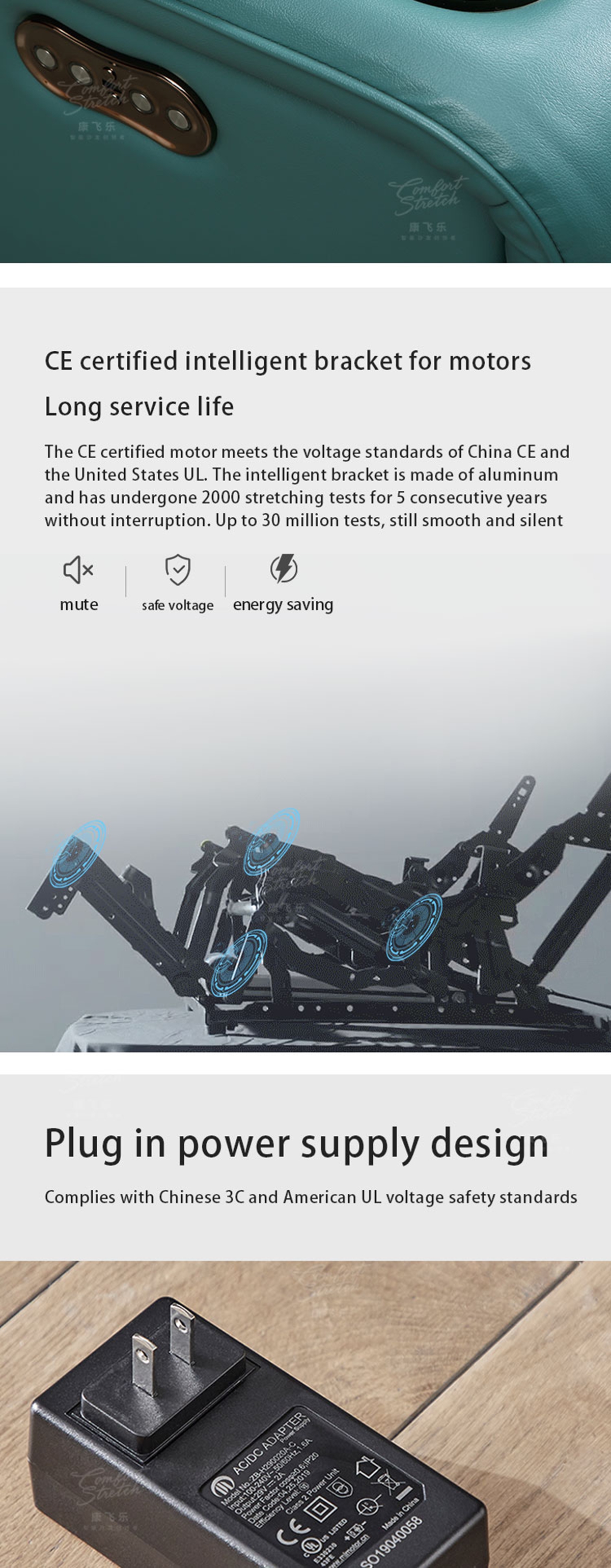【Advanced Reclining Mechanism】 Effortlessly adjust the recline angle with a smooth, whisper-quiet electric motor to find the most comfortable position for viewing.