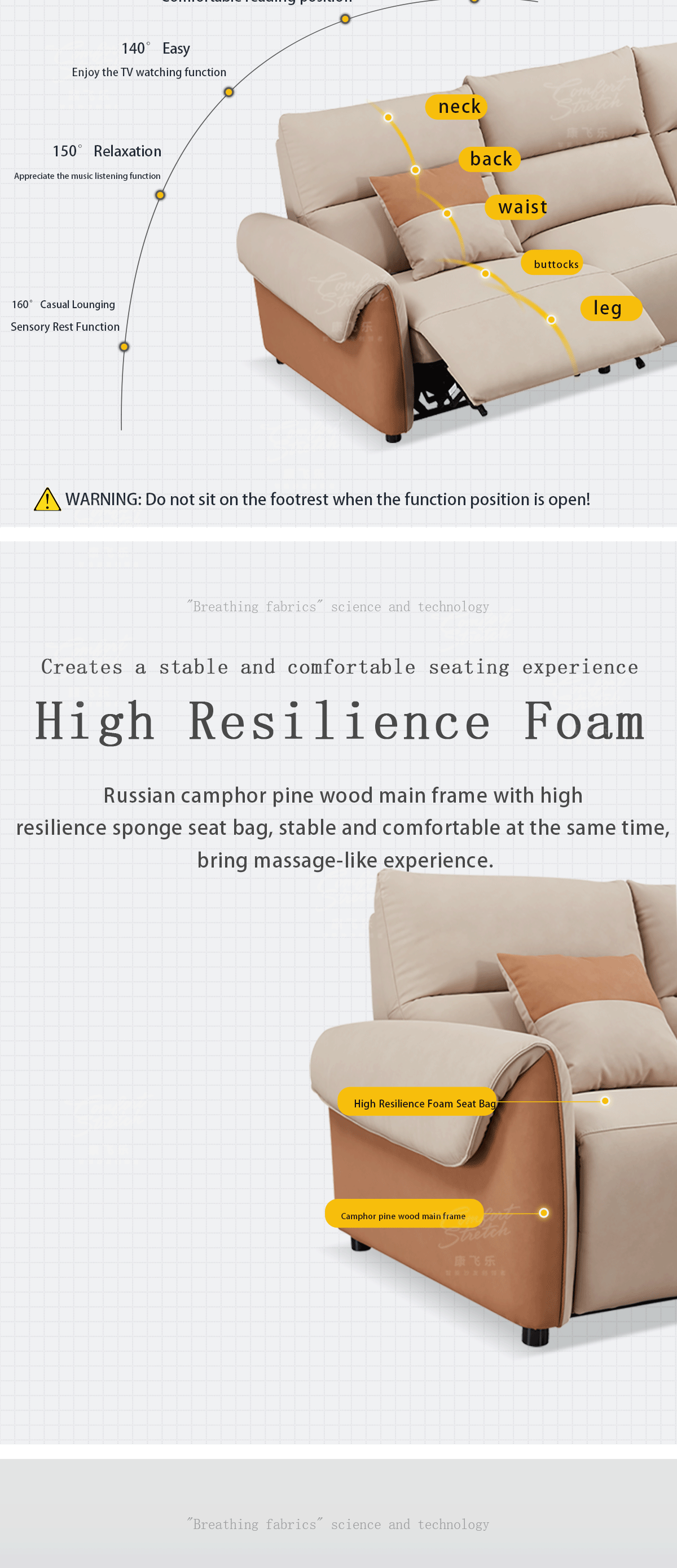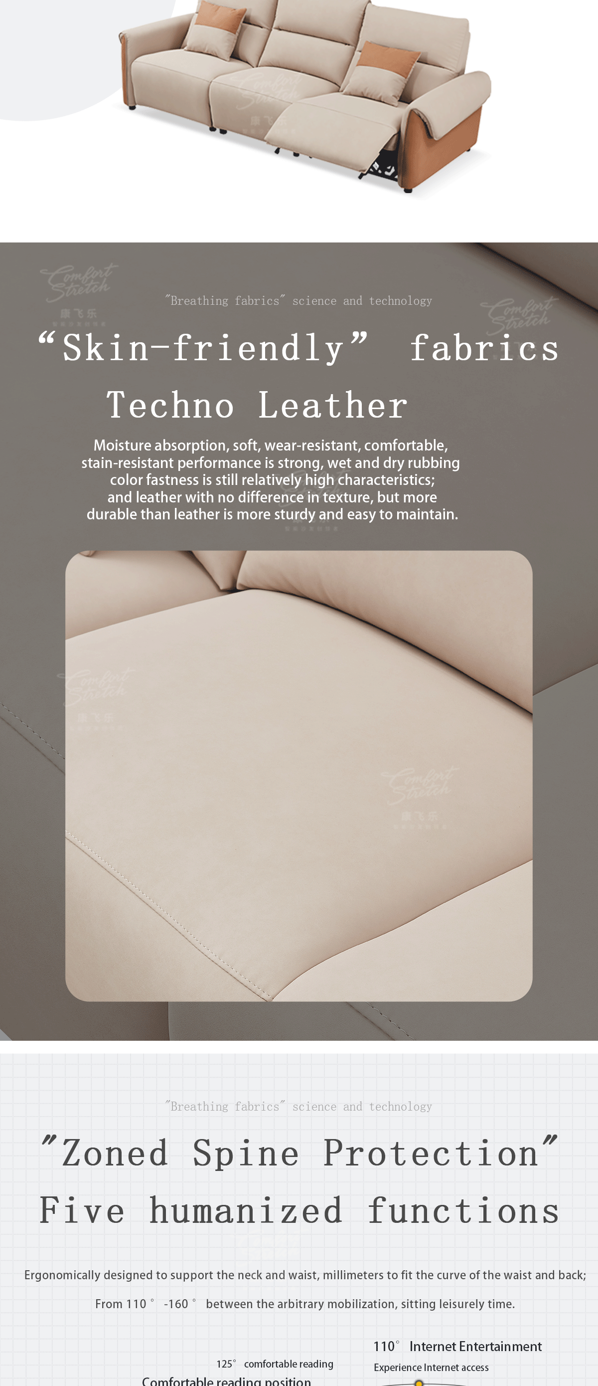 1. Enjoy effortless relaxation with the one-touch angle adjustment feature. Tailor your seating position to your exact comfort level. Imagine easily reclining the sofa after a long day and finding the perfect angle for a peaceful rest. 2. The high-density foam filling provides an incredibly soft and plush experience. It cradles your body, offering a luxurious feel that you'll look forward to every time you sit down. 3. The solid wood internal frame ensures durability and stability, guaranteeing that this sofa will be a long-lasting part of your home. 4. The techno-fabric surface is not only modern and aesthetically pleasing but also practical and easy to maintain. 5. The availability of grey for four people and light brown for a single person gives you the flexibility to meet different seating requirements and add a unique touch to your space.