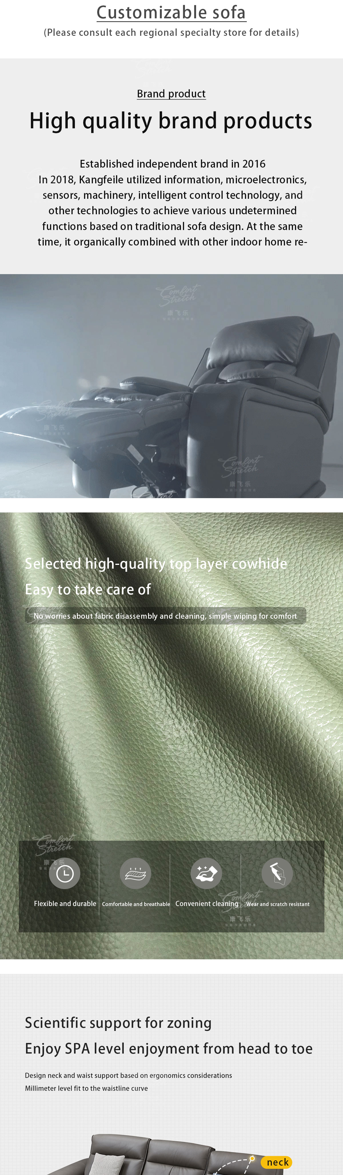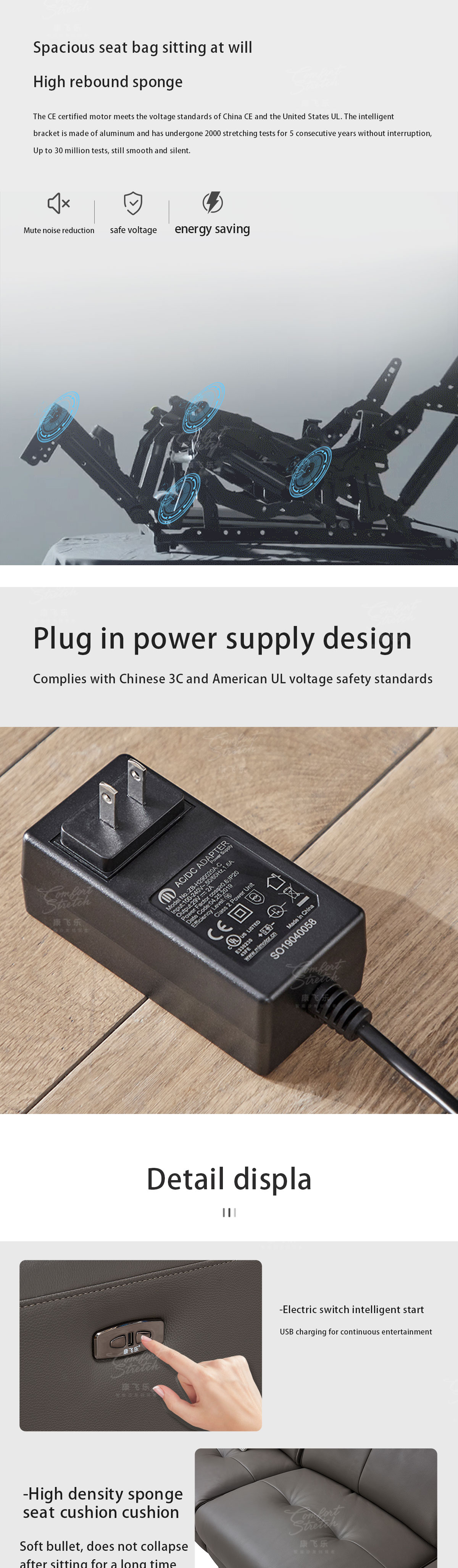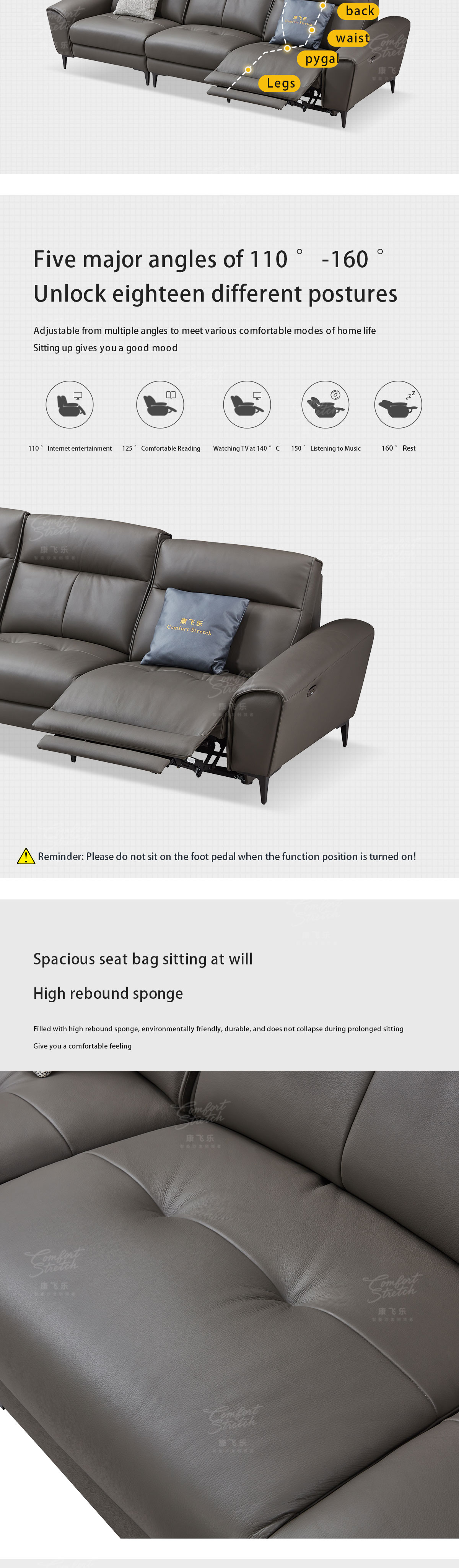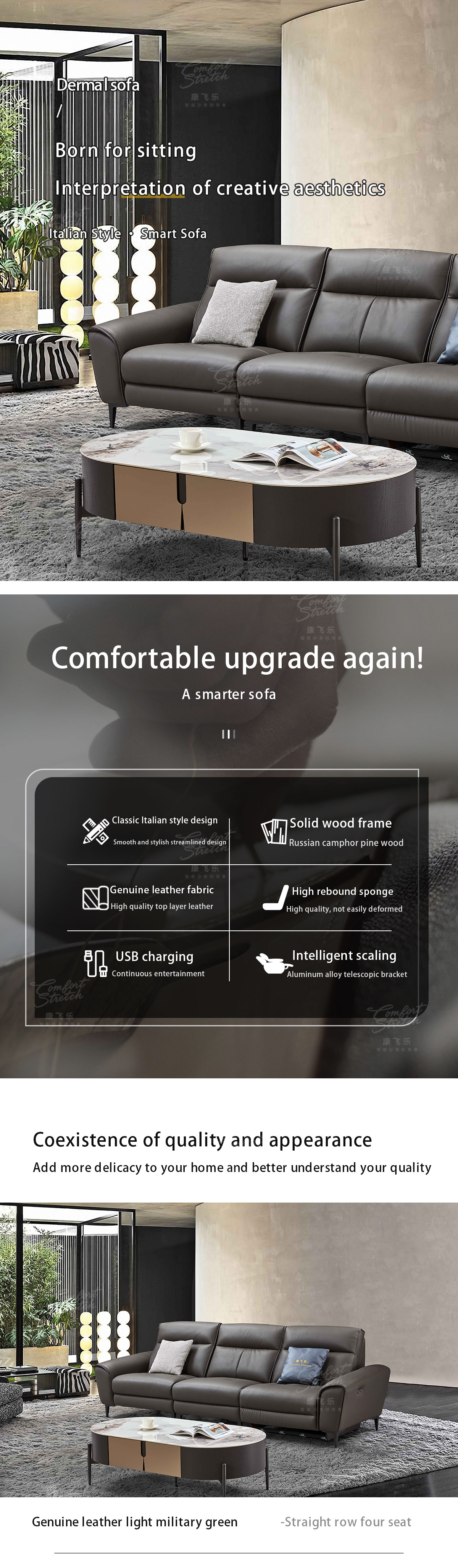 【Smart Technology Integration】The sofa incorporates smart features to enhance convenience and connectivity, such as built-in USB ports, wireless charging capabilities, and integrated control panels for adjusting reclining positions.