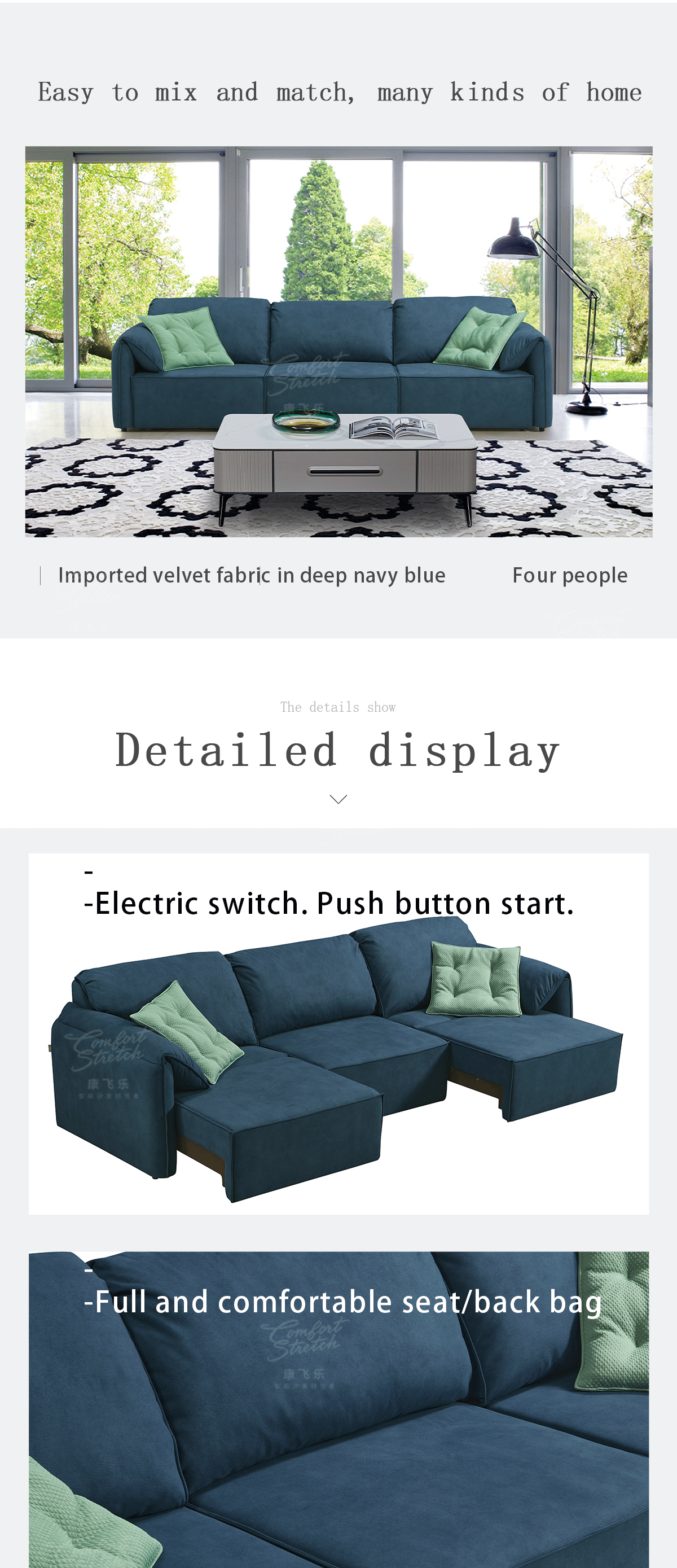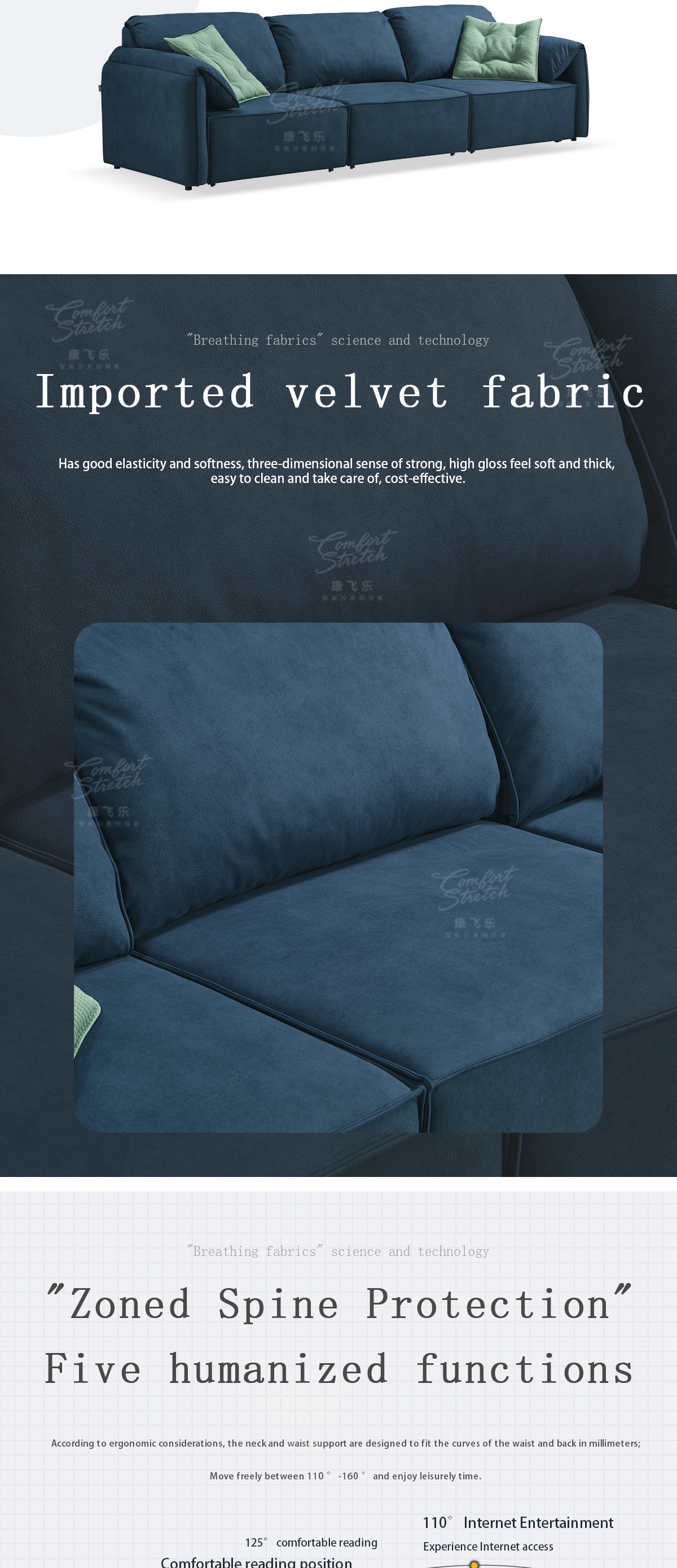 4. The imported dark blue velvet fabric surface adds a touch of elegance and sophistication. The rich color and soft texture of the velvet not only feel luxurious but also enhance the aesthetic appeal of your living space. It makes a bold statement and becomes a centerpiece that catches the eye.