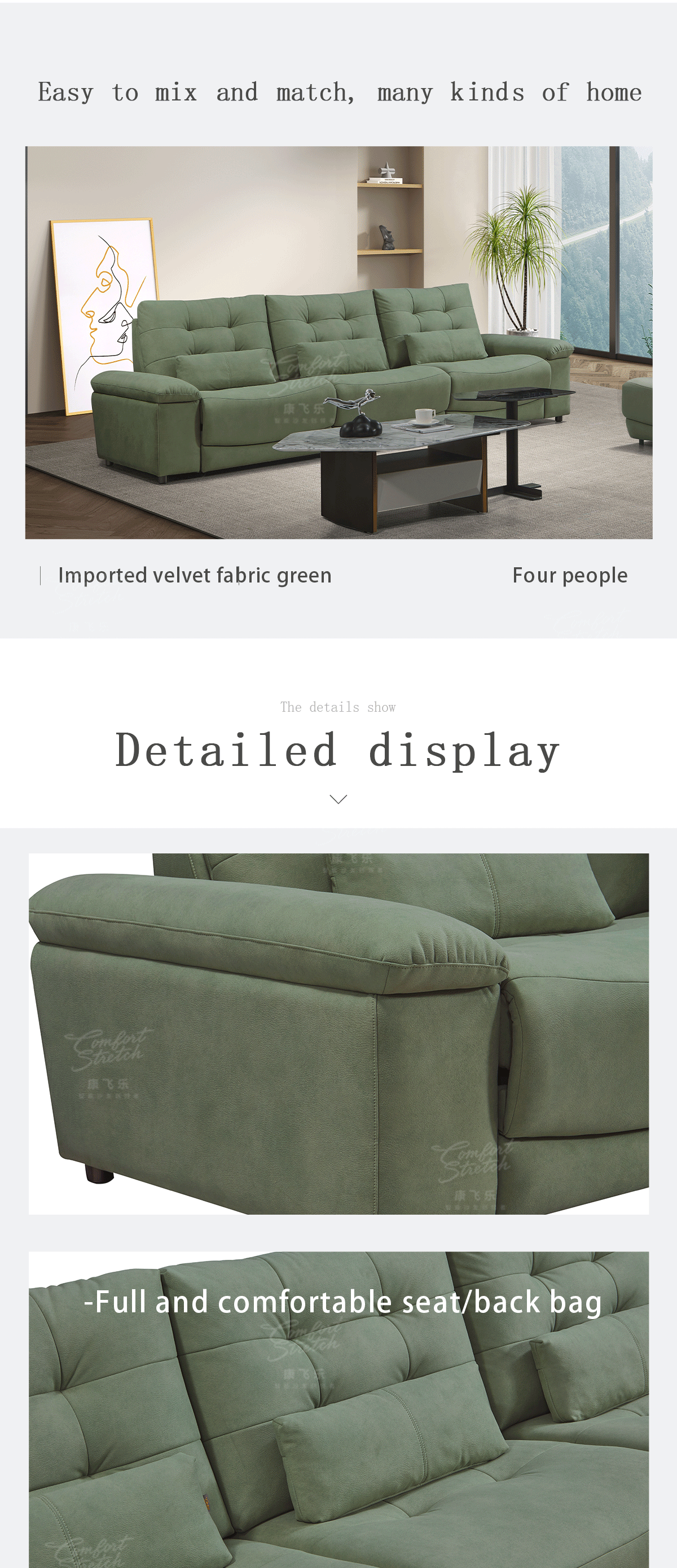 The imported velvet fabric surface feels soft and luxurious, adding a touch of elegance to your living space.