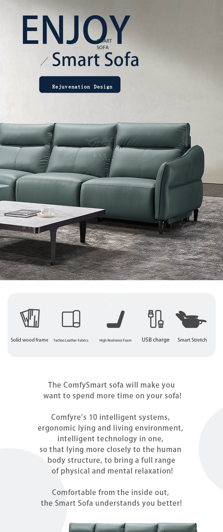 Modern Smart Sofa: Sky Blue Haven of Supreme Comfort and Advanced Functionality" Selling Points